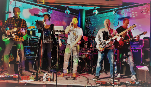 Maribel Lopez (voc, perc), Thomas Haller (bass), Lothar Rupp (git), Roman Felbek (git) und Ogün Demirsoy (drums) machen das Maximal zum Tanzschuppen.